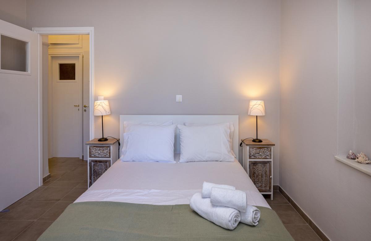 Ευρύχωρο υπνοδωμάτιο με ένα διπλό κρεβάτι. Στο δωμάτιο υπάρχει μεγάλη ντουλάπα ρούχων και κλιματιστική μονάδα. Η μπαλκονόπορτα του δωματίου οδηγεί στην πλαϊνή βεράντα και στο πάρκινγκ.
