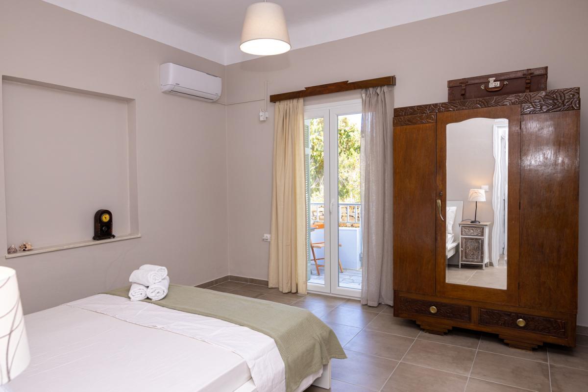 Ευρύχωρο υπνοδωμάτιο με ένα διπλό κρεβάτι. Στο δωμάτιο υπάρχει και μια μεγάλη ντουλάπα ρούχων και κλιματιστική μονάδα.